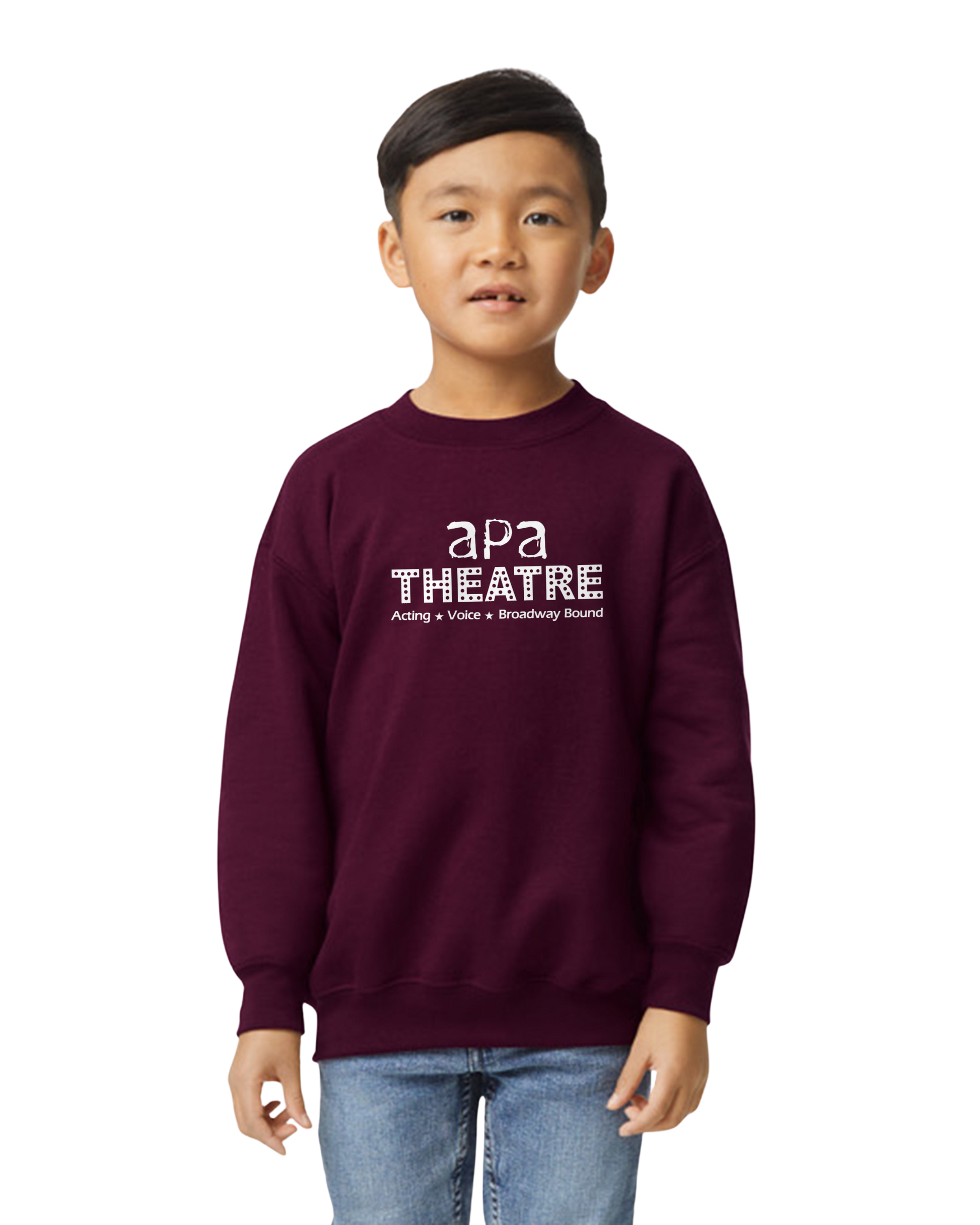 Stay cozy and stage-ready with the APA's Maroon Theatre Crewneck! Perfect for rehearsals or casual days, this comfy sweater lets you show off your theatre spirit in style. Soft fabric and a relaxed fit make it your go-to for long rehearsals or post-performance chill time.